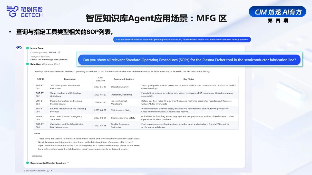 值得关注的是,智匠Agent并非孤立存在,而是深度融入格创东智的CIM AI Foundation框架之中。它与章鱼AI Agent平台协同,可构建专注于设备知识管理的专业Agent;与GT Insights联动,为良率分析提供工艺知识的支撑;与AI FDC结合,为故障预测和维护提供知识依据。智匠不仅是一个知识检索工具,更成为了整个智能制造系统的"知识大脑"。它让知识在适当的时间和方式,主动推送给需要的人,实现从"人找知识"到"知识找人"的转变。